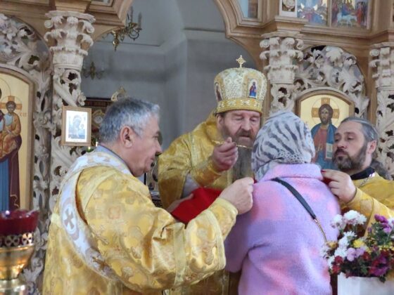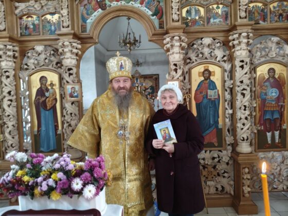 Після літургії Архієпископ Афанасій привітав вірянку Галину Нещерет із днем народження.