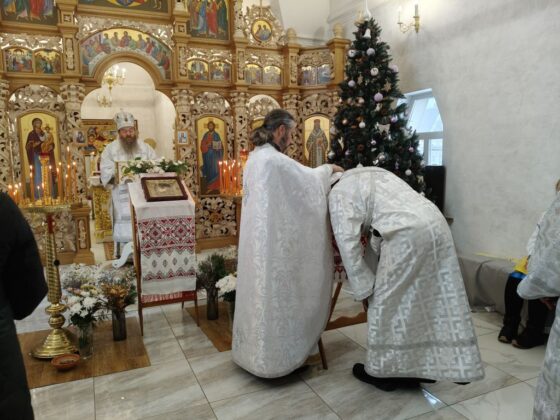 Після запричасного стиха протоієрей Олександр Горай, настоятель парафії, обласний благочинний, зачитав Різдвяне посланні Блаженнішого митрополита Епіфанія, предстоятеля Православної Церкви України. Після цього Архієпископ Афанасій також звернувся до вірян із Різдвяним посланням.